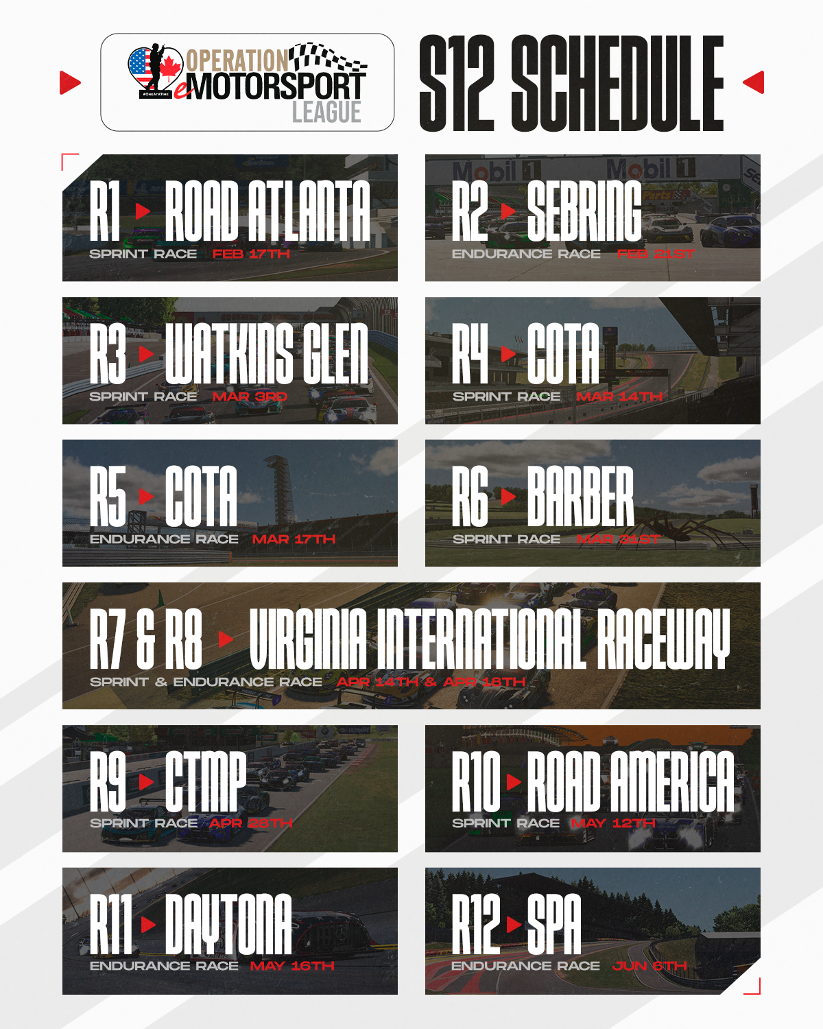 This year, the Operation eMotorsport League is entering a new chapter with new tracks, new race lengths and more competitors than ever before. Popular multi-class racing has returned and our veterans are ready for the changes!