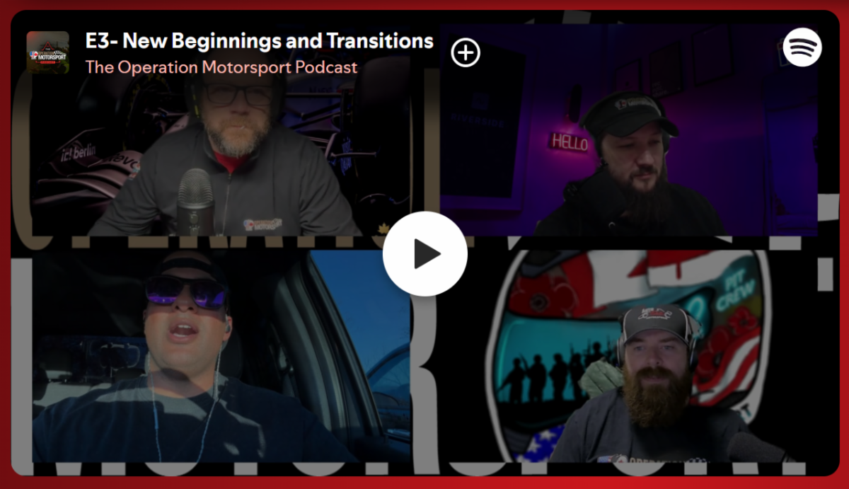 The Operation Motorsport Podcast is back for episode 3! Hosted by Operation Motorsport beneficiaries, Richard Davenport (U.S. Army/Navy) & Casey Soble (Canadian Air Force). This episode covers a range of topics, including eMotorsports challenges, race experiences, the impact of eMotorsports on Veterans and the transition of Veteran Taner Masters to a career in motorsports.