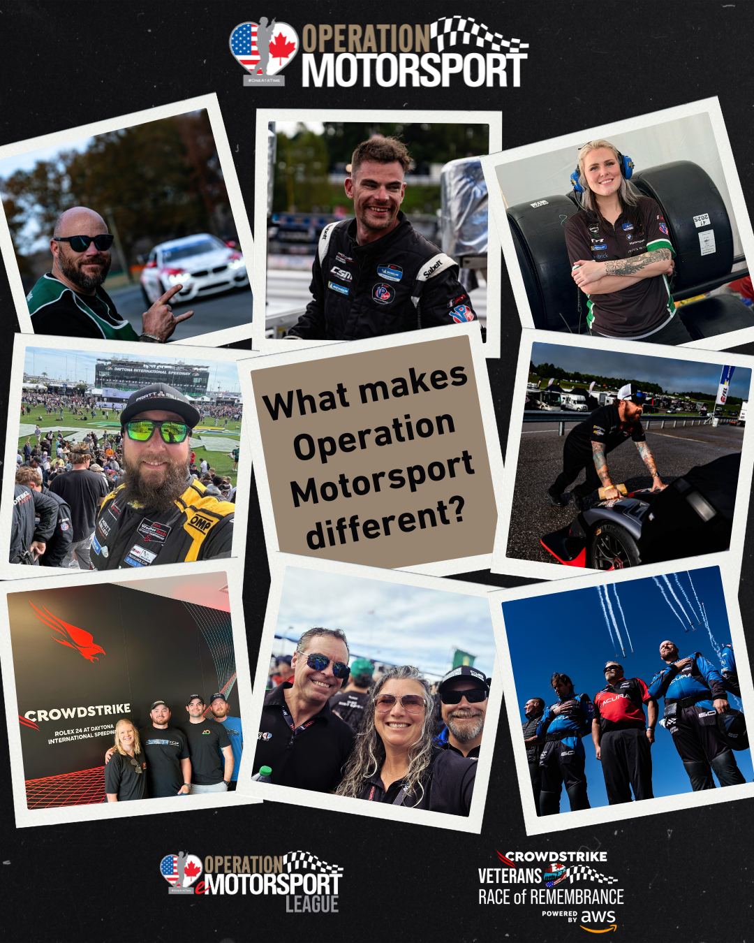 Operation Motorsport is a Veteran Led and Operated, Canadian Registered Charity, based in Brighton, Ontario, serving Canadian Service Members and Veterans and is based on three core values: Team, Identity, and Purpose. Operation Motorsport supports the recovery of medically releasing or retired Service Members affected by military service through Motorsports opportunities. Our motto is One At A Time.