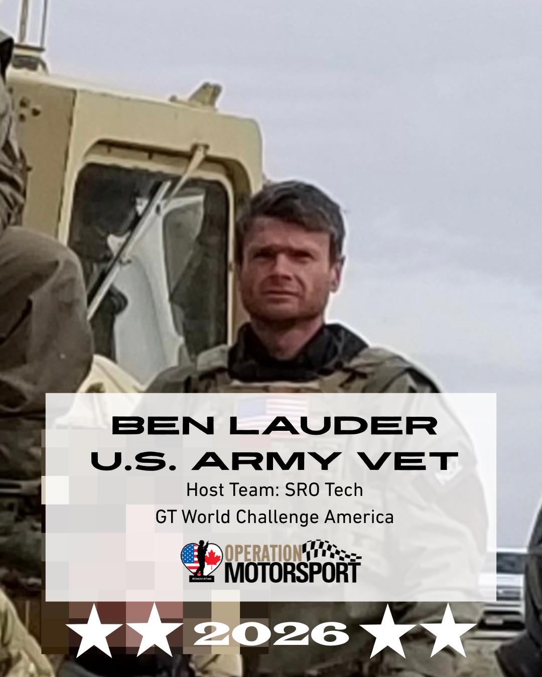 | | | Meet the 2026 SRO Beneficiaries | | For more information on the Motorsport Immersion program for U.S. veterans with a VA/VAC rating, visit https://operationmotorsport.org/motorsport-immersion/ | | |