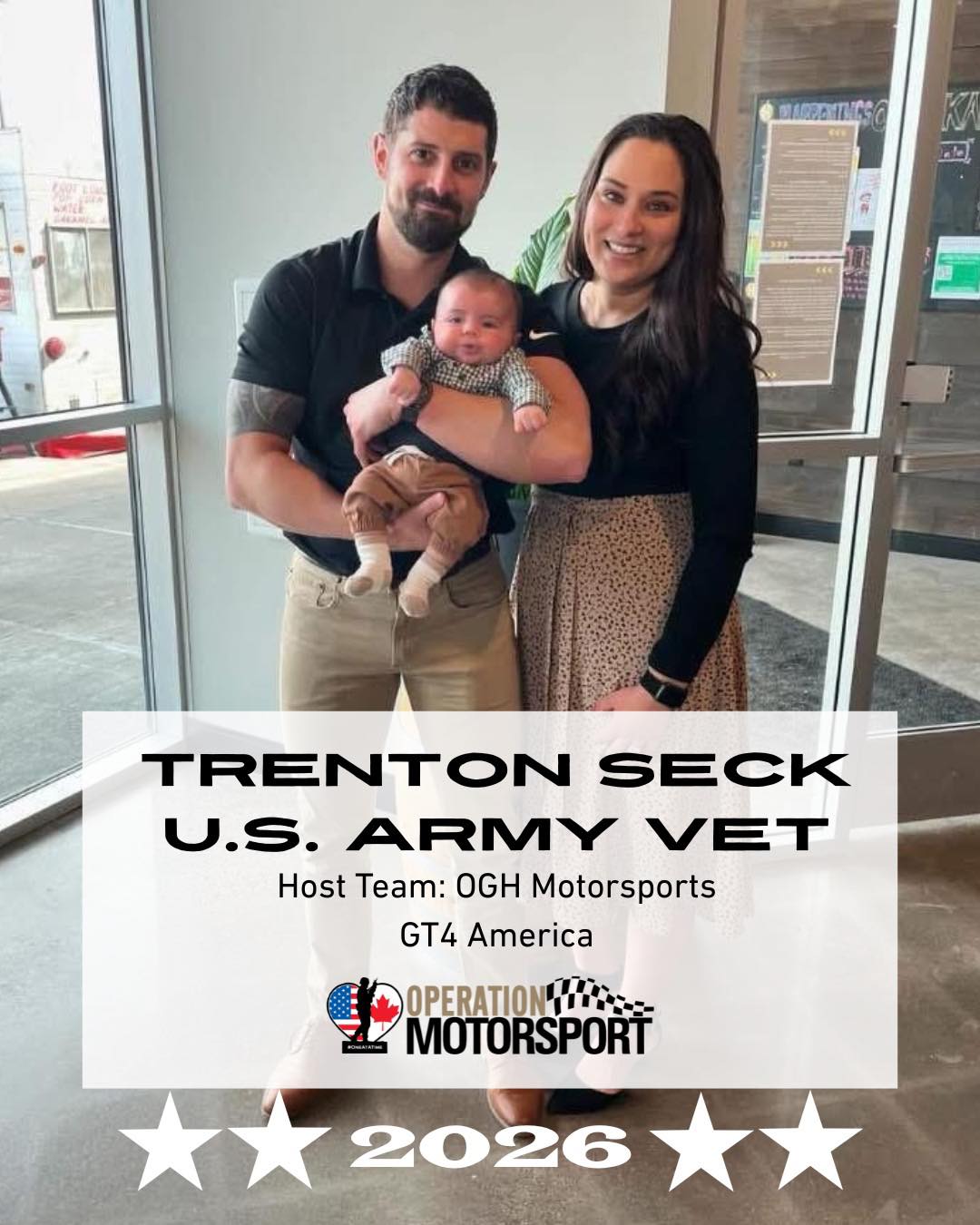 Introducing 2026 Motorsport Immersion beneficiary Trenton Seck! (He’s the one on the left with wife Sara & son Gunnar 🤣). Seck will work with OGH Motorsports.