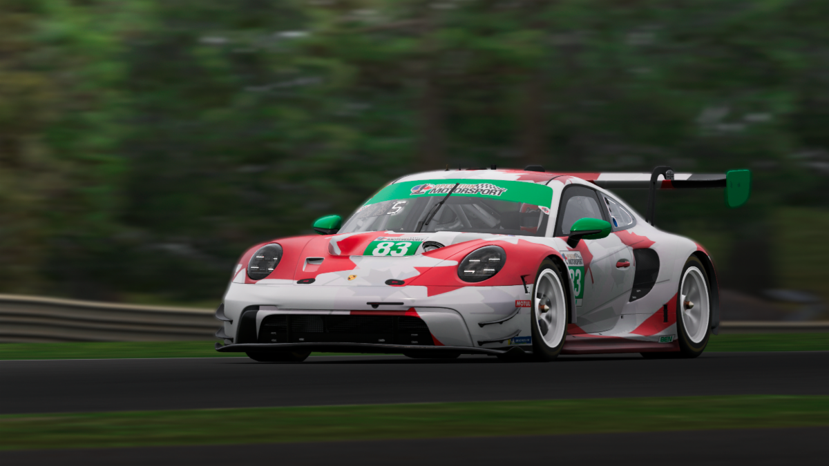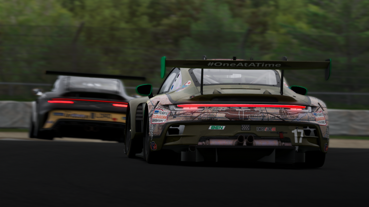 The Porsche 992.2 class welcomed a new face at the front as Tyler Guillemette took the class win, breaking up the Glandon/Wallace podium monopoly we have seen in prior rounds. Chris Glandon recovered to second and picked up the fastest lap, while Martin Wallace held on for third. The story at the back of the class was a tough night for Scott Andrews, who disconnected after just seven laps — well under the 50% threshold — walking away with only four points.